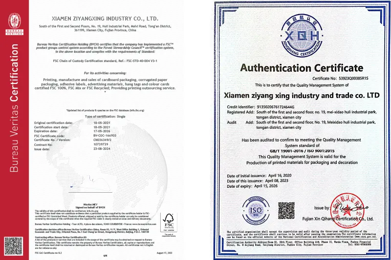 J: kami memiliki FSC, FDA, SGS, VOC, dan kepatuhan terhadap peraturan lingkungan seperti RoHS, 94/62/EC, dan US TPCH. Pabrik kami memiliki sertifikasi ISO9001, sebagai pemasok dan eksportir kemasan internasional terkemuka.